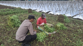 Edukasi Ketahanan Pangan, Bhabinkamtibmas Ajak Petani Manfaatkan Lahan Kosong untuk Tanam Kangkung
