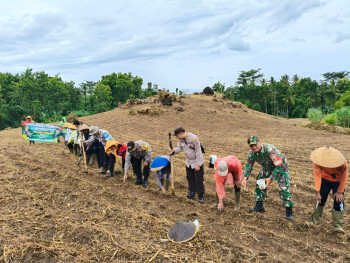 Polresta Banyuwangi Bersama Kelompok Tani Tanam Jagung Serentak Gelorakan Swasembada Pangan