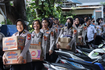 Polwan Terjun ke Kebon Jeruk, Serahkan Snack hingga Sembako ke Warga Terdampak Banjir