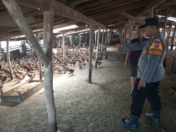 Bhabinkamtibmas Desa Kragan Bersama Perangkat Desa Cek Program Ketahanan Pangan Peternakan Bebek Petelur
