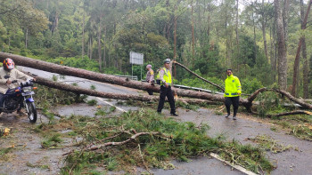 Polres Magetan Bersama TNI dan BPBD Evakuasi Pohon Tumbang, Akses Jalan Sarangan - Cemorosewu Terbuka